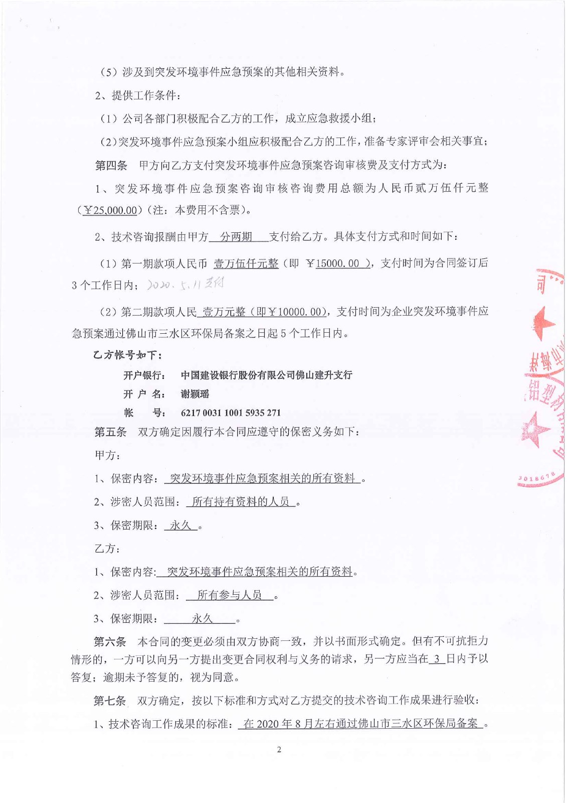 2020年环境应急预案技术服务合同