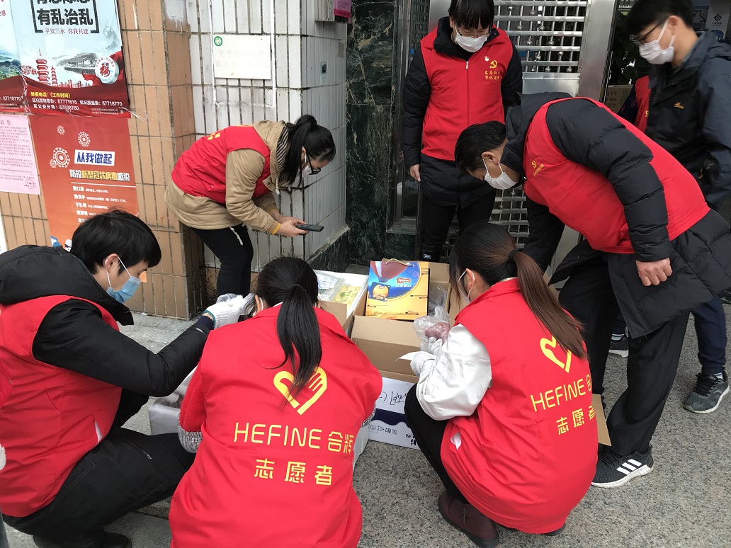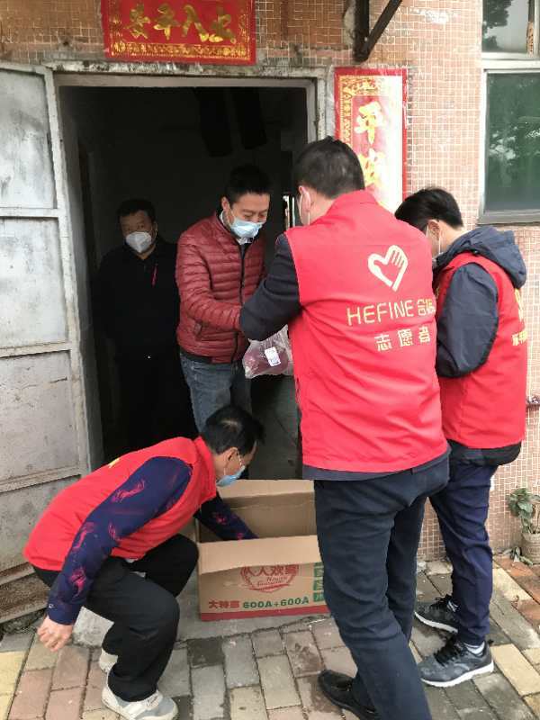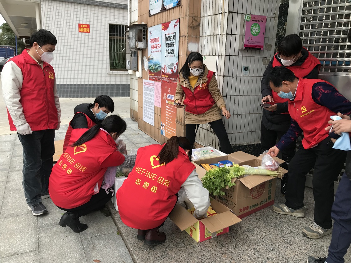 (英辉铝业党支部书记余双辉 派传单 配送食物)