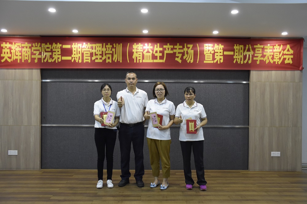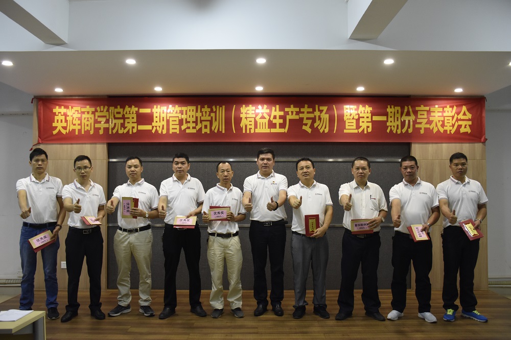 英辉铝业厂长兼商学院长余总对以上优秀学员加以表扬,并表示通过上次《4R团队执行力训练营》的培训,现已有部门实施并取得成果,希望本次的《精益生产管理》能够给大家带来更多的收获。
