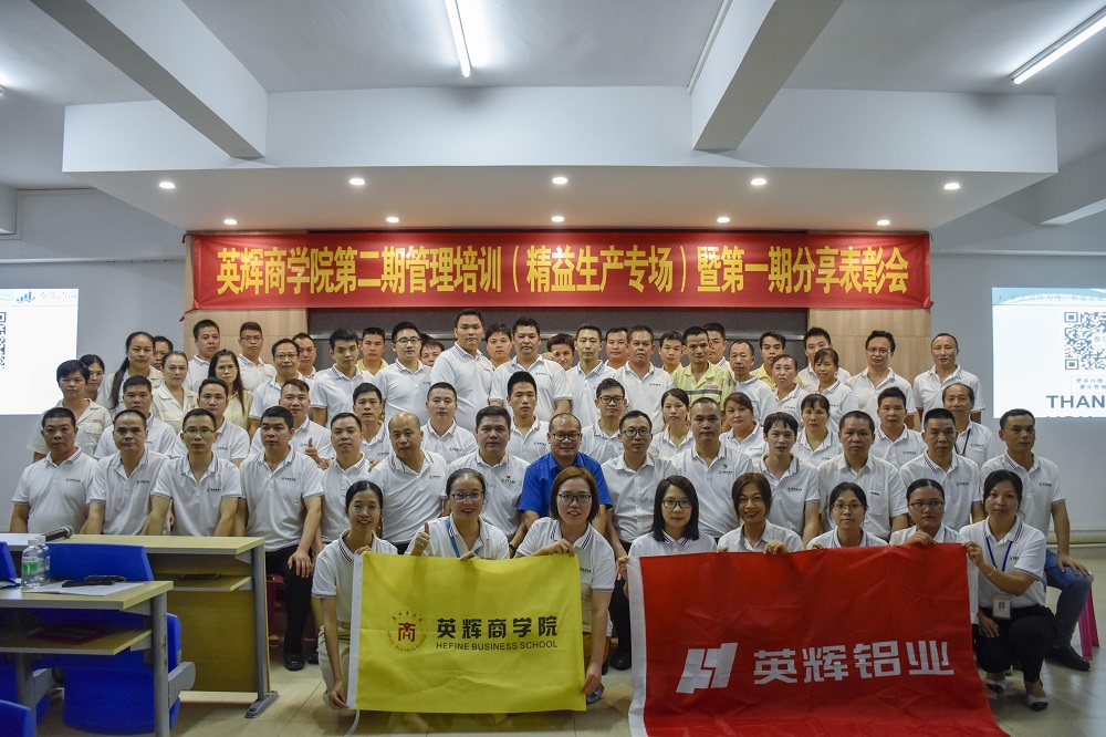 2019年10月15日,英辉商学院第二期管理培训(精益生产专场)暨第一期分享表彰会,在展厅培训室如期举行。本次培训由广州泰乐企业管理咨询有限公司精益生产项目专家冯乐平老师主讲《铝型材行业的精益生产管理》课程,公司销售部、设备部、生产部等部门管理层全体参加。