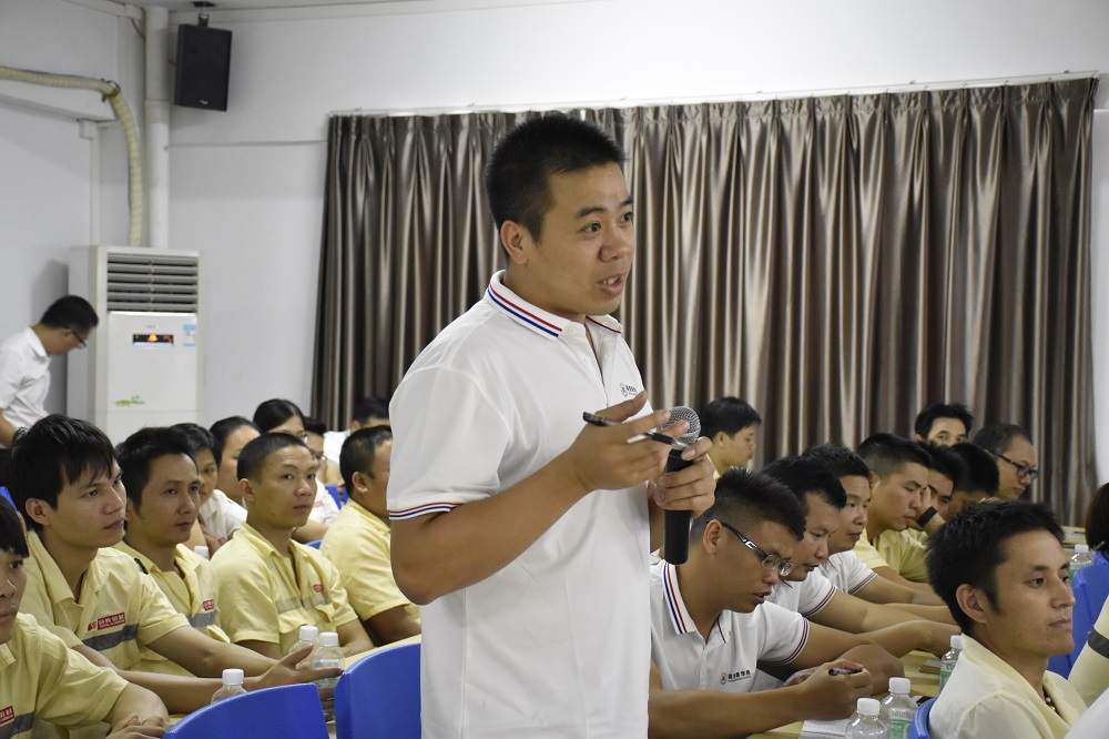 课堂上,冯乐平老师通过精益思想的起源及发展、铝型材行业发展存在问题分析、精益生产的实际操作等四个方向为大家详细讲解了精益生产的重要性。