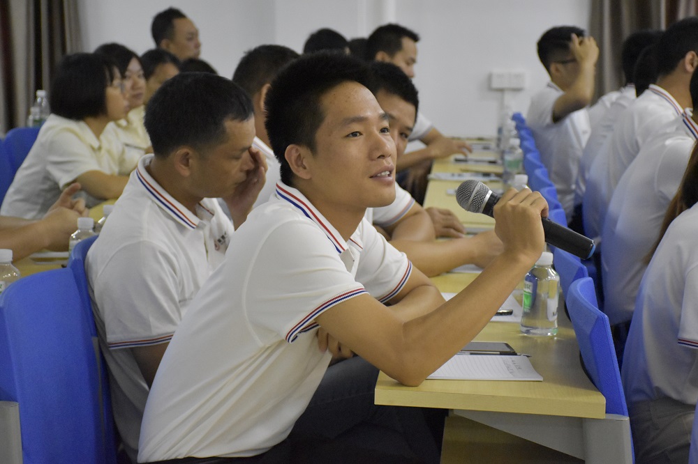 培训会第一项议程由英辉铝业总经理兼商学院总顾问谭总进行致辞,谭总表示商学院的成立是英辉成长的一个课堂,希望各学员在课堂上都有所收获,并实施到工作上,带动线上员工高效工作,共同成长。