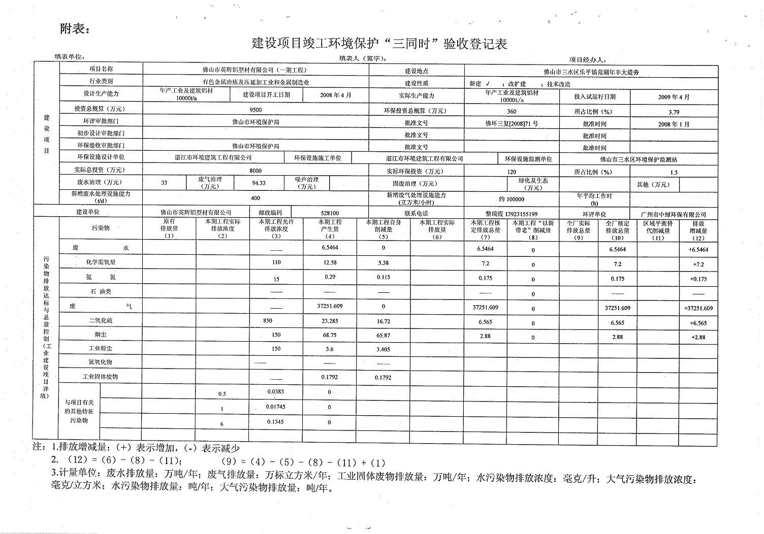关于佛山市英辉铝型材有限公司三期及整体工程竣工环境保护验收意见的函