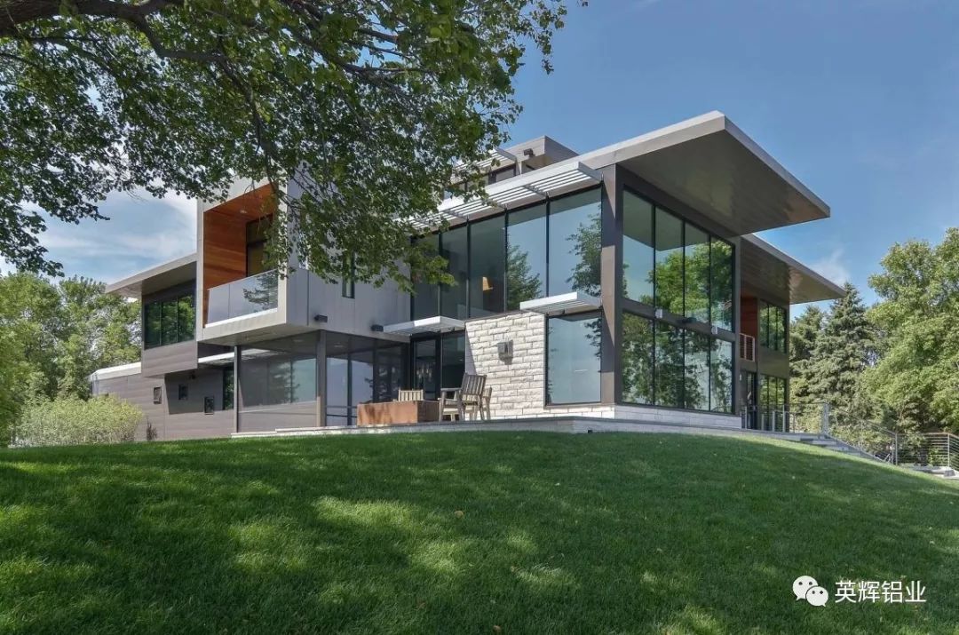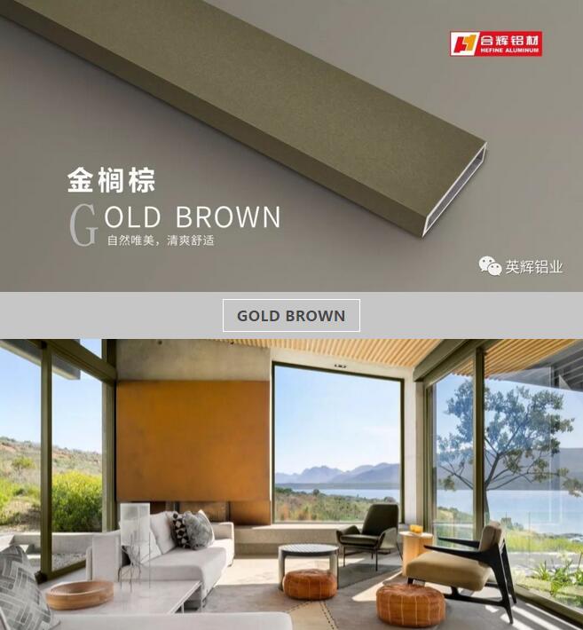 合辉喷涂金榈棕色系型材构成的门窗,远观自然唯美,其磨砂表面处理,近观清爽舒适,居家装饰良配。