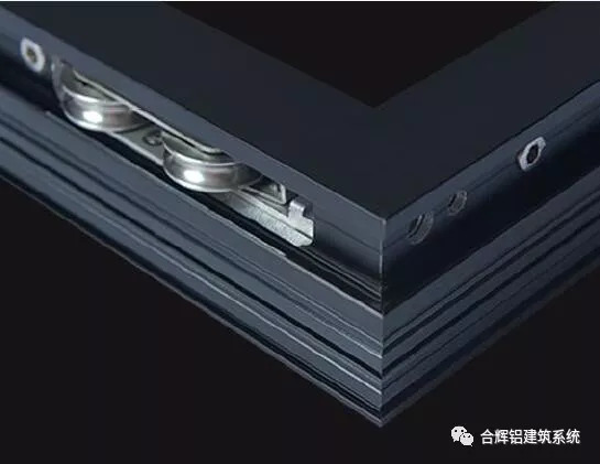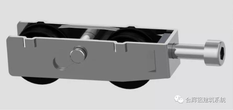 合辉窄边推拉门采用独特的导向轮和下滑轮设置,导向轮具有可调节功能,通过调节螺丝实现导向轮的松紧调节,平稳性好、精度高、可防止门扇晃动过大;且导向轮采用包胶处理,达到静音减噪作用。